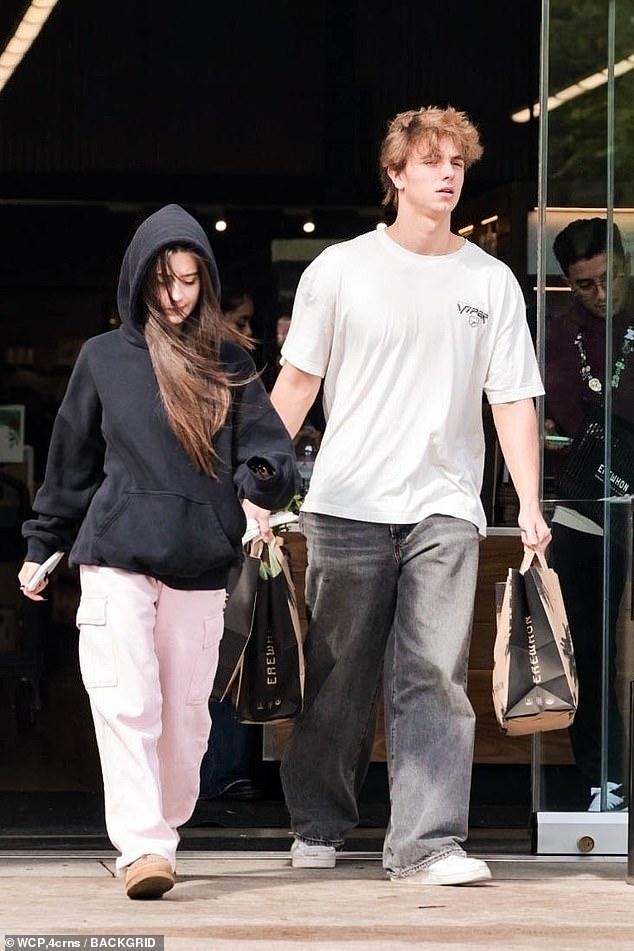 The 19-year-old nepo baby was pictured in Calabasas, California, on Tuesday as he left an upscale Erewhon grocery store with his girlfriend at his side.