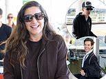 ‘Happy Birthday @glenpowell, the man who’s seen me naked more times than I’d like to admit,’ Stamos, 62, joked in the caption of his steamy Instagram post; pictured with Adria Arjona (L) in April 2024 in LA