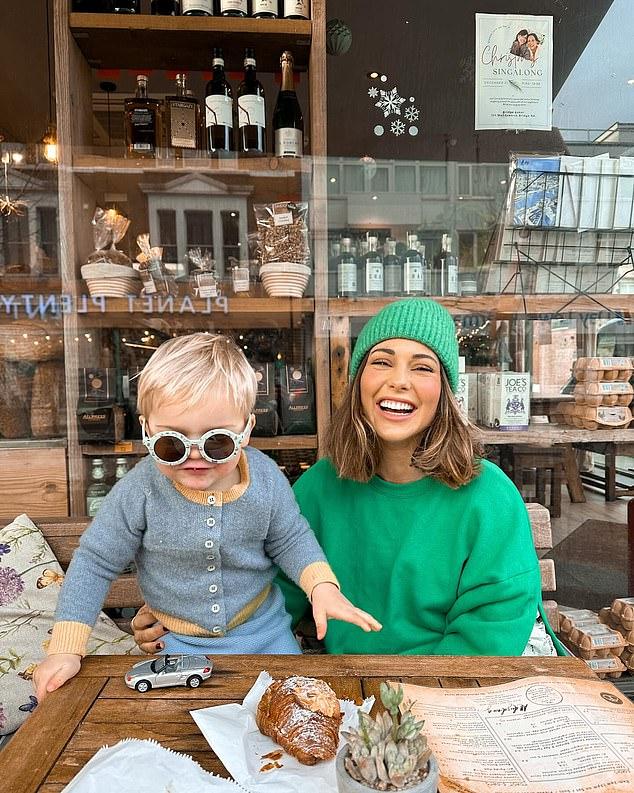 Former Made in Chelsea star Louise Thompson (right) has revealed she will never be able to have another child after her son Leo’s birth in 2021