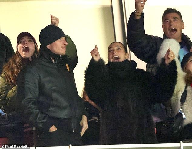 And the actor’s fiancée Dua Lipa, 30, did little to commiserate him as she jumped for joy alongside her model sister Rina, 24, and father Dukagjin, 56.