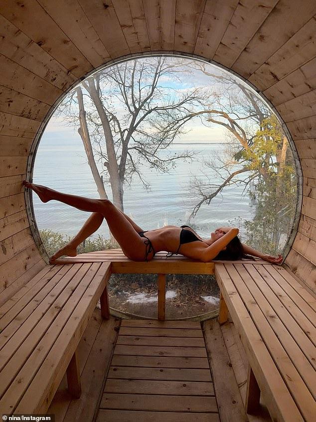 Dobrev also shared a brief video clip via Instagram Stories showing her walk into the steam room, set down a beverage and towel, and stretch.