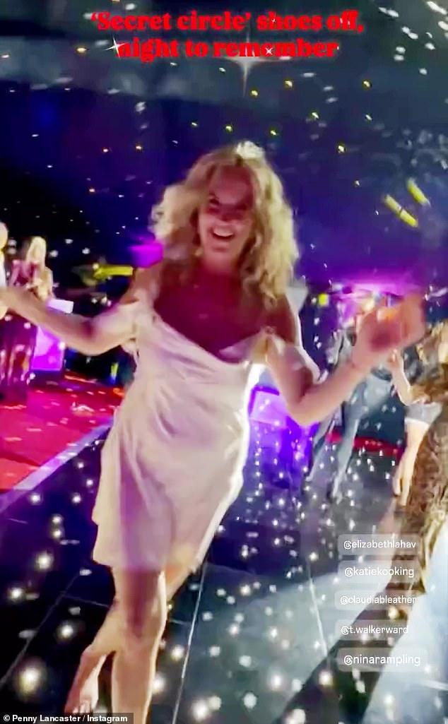 Penny Lancaster kicked off her shoes and showed off her dance moves as she got her groove on during a ‘night to remember’