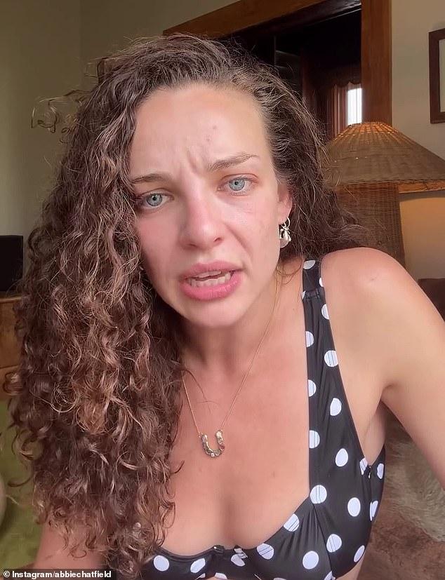 Reliving the moment along with her followers, Abbie watched on in embarrassed horror as she watched herself in her undies.