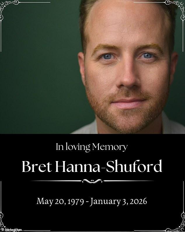 The note went on, ‘Bret Hanna-Shuford left this world peacefully with love surrounded by his family. Our hearts are broken but we will continue to make him proud of us.’