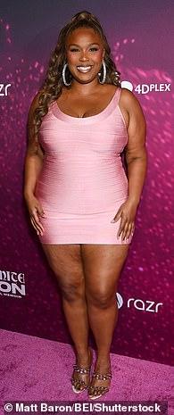 Lizzo, 37, looked striking in a baby pink bodycon minidress that highlighted her slimmed down physique as she posed on the red carpet.