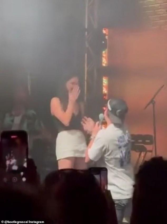 She then joined him on stage as he got down on one knee.