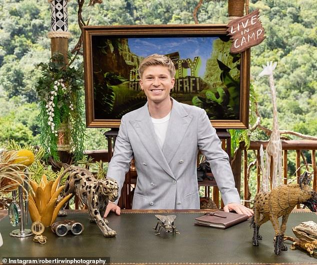 ‘We’re writing today to appeal to your dedication to wildlife conservation and to ask that, as a show of respect for all species, you urge I’m a Celebrity… producers to stop exploiting animals.’ Pictured: Co-hosts Robert Irwin and Julia Morris