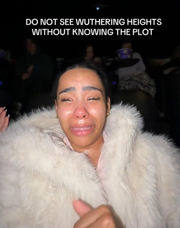 One film-goer (pictured) was filmed hysterically crying on TikTok after watching Emerald Fennell’s Wuthering Heights