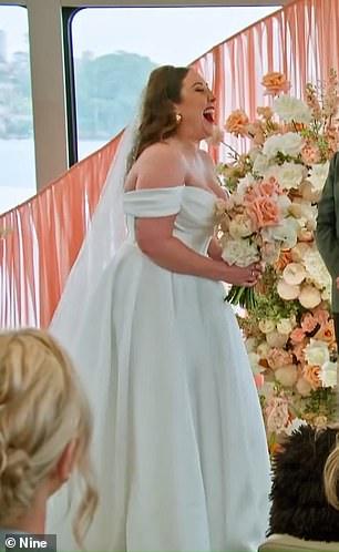 Married At First Sight bride Rachel Gilmore has pointing out that her bouquet disappeared and reappeared during her eyebrow-raising laughing fit - indicating the scene was spliced together using different clips