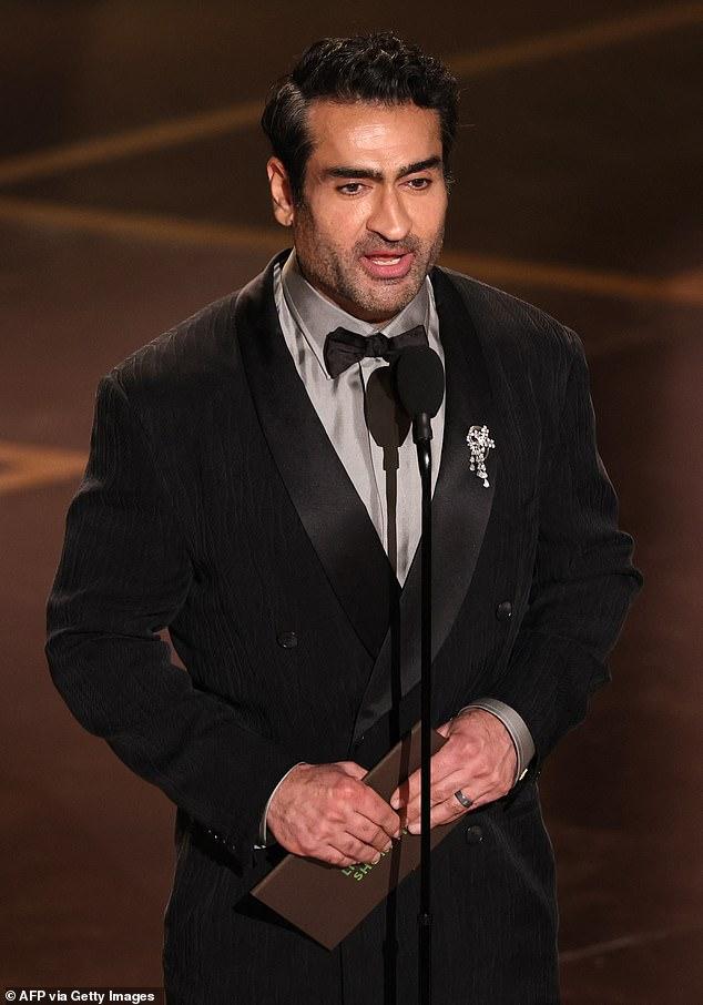 Presenter Kumail Nanjian makes inappropriate Holocaust joke before awarding The Singers and Two People Exchanging Saliva tie for Best Live Action Short Film