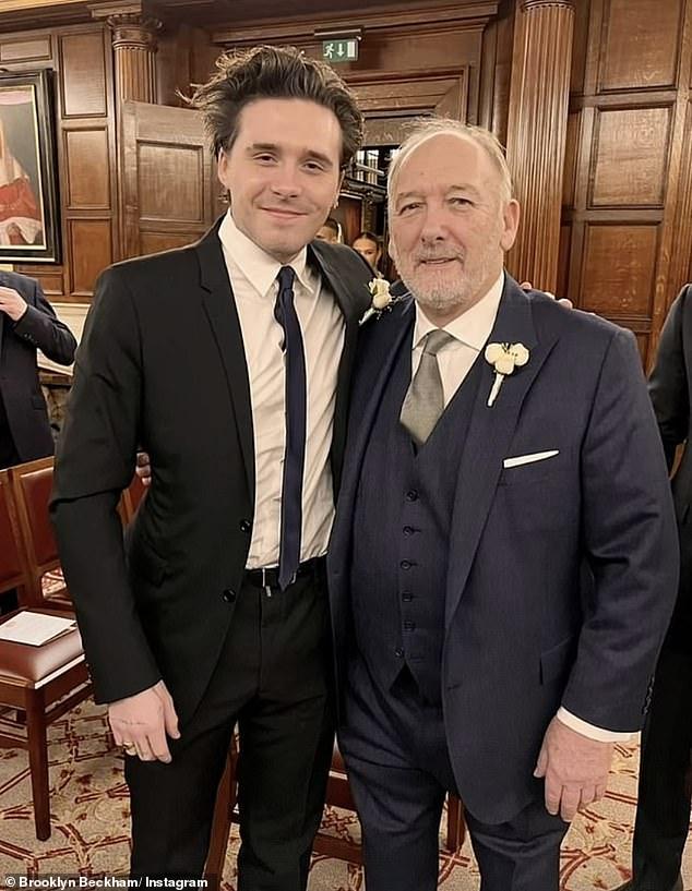 Ted and Hilary marked Brooklyn’s 27th birthday on Wednesday, but unlike the rest of the Beckham clan, they included photos of his wife Nicola, captioning the post: ‘Happy birthday Brooklyn. Hope you have a fabulous day. With love from Grandad and Hilary’