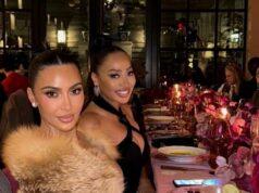 The TV personality, 35, flaunted her amazing figure as she slipped into a pink velour bodysuit which she teamed with black fishnet tights