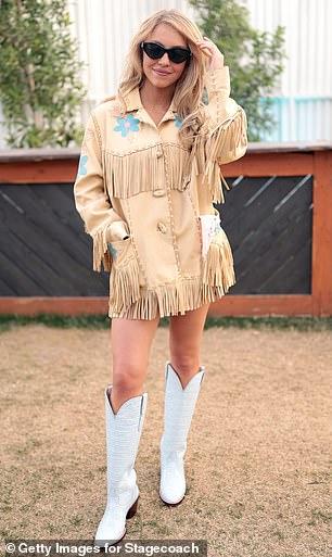 She helped host the ‘Syrn saloon’ which saw her joining singer Bailey Zimmerman as they posed on a stage together in snaps shared to the official Instagram page for the brand.