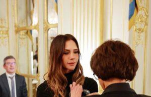 Victoria Beckham paid tribute to her husband David and their children as she was named a Knight of the Order of Arts and Letters...