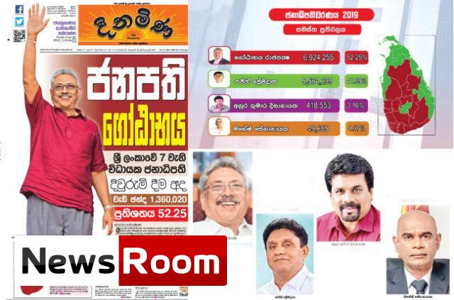2019 නොවැම්බර් මාසයේ ජනාධිපතිවරණ දිනය පැමිණෙන විට රැල්ල නිර්මාණය වී තිබුණේ ගෝඨාභය රාජපක්ෂ මහතාටය. මැතිවරණ දිනයේ උදෑසන වන විට රටේ තිබුණේ ඉතාමත් ඉහළ මහජන උද්යෝගයකි. මහජන සහභාගි දේශපාලන රැල්ලකින් ජනාධිපතිවරයකු බිහි වූයේ 2019 දී යන්න සඳහන් කිරීමේ වරදක් නැත. දකුණ, ගම්පහ, කොළඹ, කළුතර, කුරුණෑගල වැනි ප්රධාන දිස්ත්රික්කවලදී ගෝඨාභය රාජපක්ෂ මහතා ජයග්රහණය කළේ 65% තරම් ඉහළ ප්රතිශතයකිනි. කඹුරුපිටියේ ප්රතිඵලය 70%ද ඉක්මවා ගොස් තිබුණි. ලැබුණු ප්රතිඵල අනුව දකුණේ ඡන්ද බහුතරයකින් පමණක් ජනාධිපතිවරයකු පත්වූ පළමු අවස්ථාව ලෙස ගෝඨාභය රාජපක්ෂ මහතාගේ ජයග්රහණය හඳුන්වා දිය හැකිය. උතුරු නැඟෙනහිර ආසන මෙන්ම කඳුකරය සහ කොළඹ නගරය සජිත් ප්රේමදාස මහතා ජයග්රහණය කළ අතර යාපනය සහ වන්නියේදී සජිත් ප්රේමදාස මහතා 85% තරම් ඉහළ ඡන්ද ප්රතිශතයක් ලබා ගත්ත ද ඔහුට රටෙන්ම ලබා ගැනීමට හැකි වූයේ ලක්ෂ පනස් පහකට වඩා මදක් වැඩි ඡන්ද ප්රමාණයක් පමණි. ගෝඨාභය රාජපක්ෂ මහතා ඉතිහාසයේ අපේක්ෂකයකු ලැබූ වැඩිම ඡන්ද ප්රමාණය වන ලක්ෂ 69ක ජන වරමක් ලබා ගත් අතර අනුර කුමාර දිසානායක මහතාට හිමි වූයේ ලක්ෂ හතරකට මදක් වැඩි ඡන්ද ප්රමාණයකි.