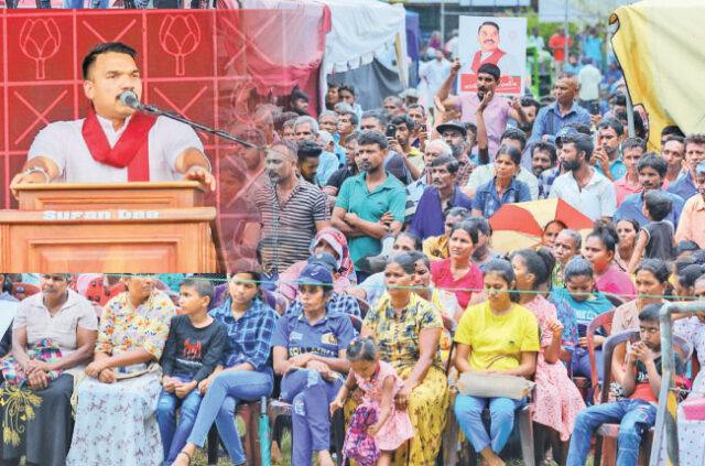 “මේ ජනතාව විශ්වාස කරන නායකයා සමඟ විශාල පිරිසක් අද මේ රැස්වීමට සහභාගි වී සිටිනවා. ශ්රී ලංකා පොදු ජන පෙරමුණ වගේම මාතෘ භූමියේ විජයග්රහණය තහවුරු කරන්න මේ ජනතාව දෙන සහයෝගය අගය කරනවා. අපි දේශපාලනය කරන්නේ මේ රට ගොඩනඟන්න. අපට දැක්මක් වගේම සැලැස්මක් තිබෙනවා. අපි මැතිවරණවලදී බලය ලබා ගැනීමට හෝ මැතිවරණවලට ඉදිරිපත් වෙනවාට ඉදිරිපත් වන්නේ නෑ. අපි මැතිවරණවලට ඉදිරිපත් වන්නේ දිනන්නයි. අපි දිනන්නේ රට හදන්නයි. අපිට සැලැස්මක් සහ වැඩපිළිවෙළක් තිබෙනවා. ඒ වගේම රට හදන්න අපිට වුවමනාවකුත් තිබෙනවා. අපිත් ගම්වල හැදුණු වැඩුණු අය.