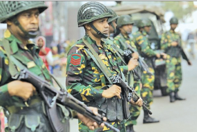 බංග්ලාදේශයේ කොමිෂන් ලත් හමුදා නිලධාරීන්ට විනිසුරුවන්ට ව්යවස්ථාවෙන් ලබා දී ඇති බලයට සමාන බලයක් සහිතව දින 60ක කාල සීමාවකට රටේ සාමය ස්ථාපිත කිරීමට හමුදා බලය යෙදවීමට එරට අන්තර්වාර රජය පෙරේදා මධ්යම රාත්රියේ සිට අවසර දුන් බව එරට මාධ්ය වාර්තා කළේය.