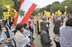 මැදපෙරදිග යුද්ධය ව්යාප්ත කිරීමට ඊශ්රායලයට සහාය නොදෙන ලෙස ඉල්ලා පලස්තීන සහ ලෙබනන් හිතවාදීන් අමෙරිකාව පුරා විරෝධතාවක නිරතවන බව විදෙස් මාධ්ය වාර්තා කළේය. නිව්යෝක් නුවර හැරල්ඩ් චත්රරස්රය අසල රැස්වූ විරෝධතාකරුවන් ඊශ්රායලයට යුද ආධාර දීම නවත්වන ලෙස බල කරමින් විරෝධතාවක නිරත වී ඇති අතර, තවත් නගර රැසක එවැනි විරෝධතා පැවැති බවට වාර්තා වේ.