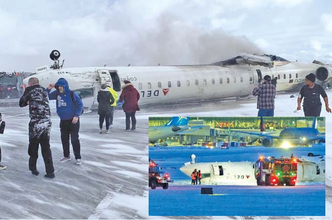 මගීන් 76 දෙනකු රැගෙන අමෙරිකාවේ සිට පැමිණි ජෙට් යානයක් කැනඩාවේ ටොරොන්ටෝ නුවර පියර්සන් ජාත්‍යන්තර ගුවන්තොටුපොළට ගොඩබැස්වීමේදී ලිස්සාගොස් උඩුයටිකුරු වීමෙන් 18 දෙනකු තුවාල ලබා ඇති අතර, ඉන් තිදෙනකුගේ තත්ත්වය බරපතළ බව විදෙස් මාධ්‍ය වාර්තා කරයි. බරපතළ තුවාල ලැබූ අය අතර සිවු හැවිරිදි කුඩා දරුවකු ද සිටින බව වාර්තා වේ.