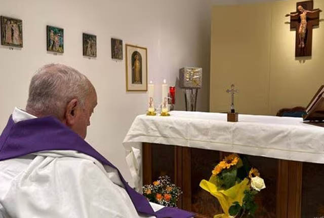 නියුමෝනියාව ඇතුළු පෙනහළු ආශ්රිත ආබාධවලින් පීඩාවට පත්ව මාසයකට වැඩි කාලයක් රෝහල් ගතව සිටින අතිඋතුම් ශුද්ධෝත්තම ෆ්රැන්සිස් පාප් වහන්සේ පෙනී සිටින ඡායාරූපයක් මාධ්යවලට නිකුත් කර තිබේ.