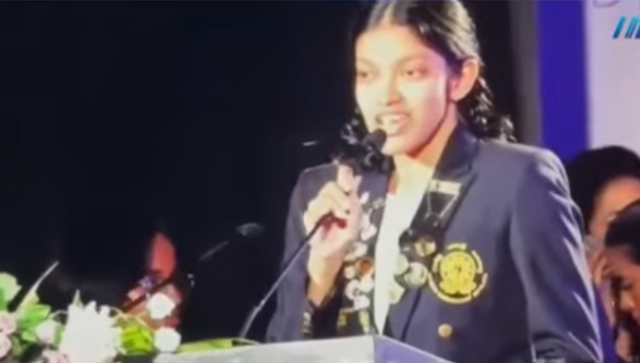 වේදිකාවට පැමිණ මයික්රෆෝනයෙන් ඇමතමින් ඇය තමන් සිය පාසල වෙනුවෙන් වසර ගණනාවක් තිස්සේ ගෙන දුන් ජයග්රහණ සිහිපත් කරමින් දැඩි අදහස් පල කිරීමක් සිදු කලාය.